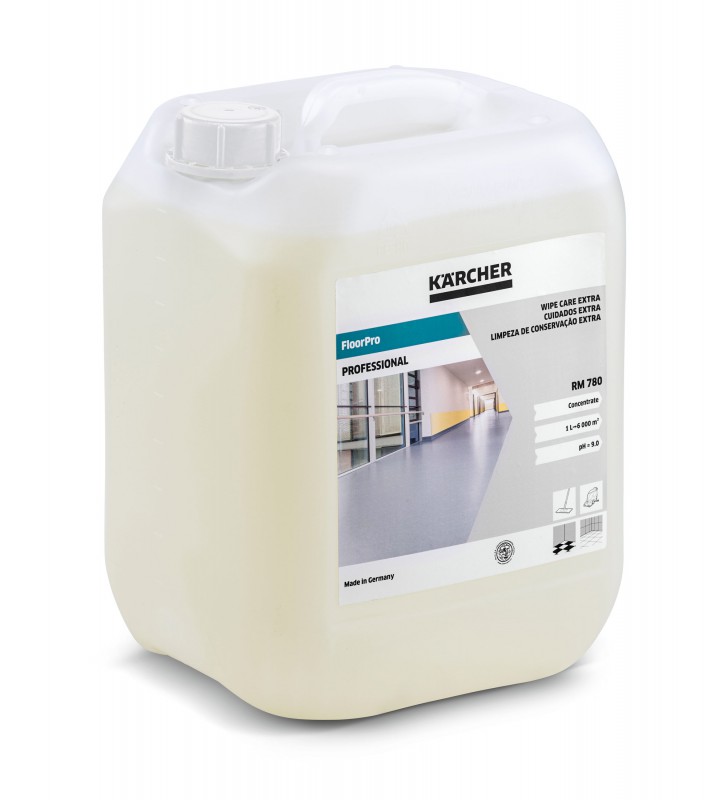 Karcher FloorPro EXTRA RM 780 — интенсивное слабощелочное (pH 9) средство для очистки и ухода, подходящее для поддерживающей чистки любых водостойких твердых и эластичных напольных покрытий. Прекрасно подходит для спортивных залов и спортивно-развлекательных комплексов, так как придаёт обработанному покрытию противоскользящие свойства (имеется сертификат по DIN V 18032-2:2001-04). С низким пенообразованием, высыхает без полос. Аналог RM 780, 20 л (6.295-468.0) не ввозится в РФ.